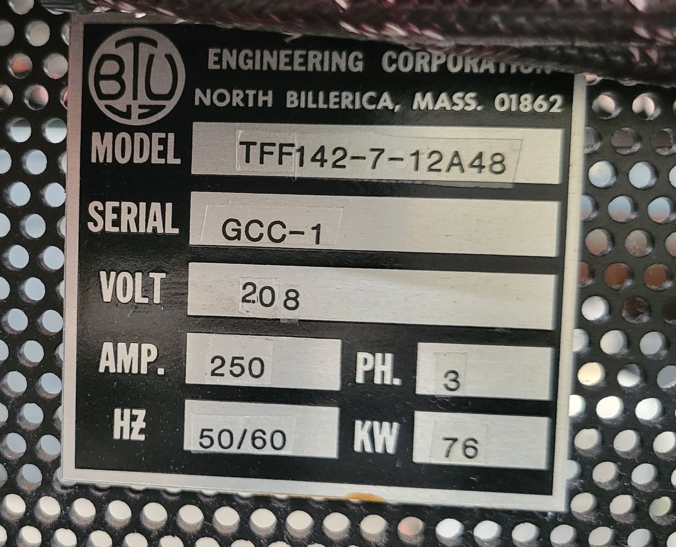 208 Vac, 250 A, 3ph, 50/60 Hz, 76 kW